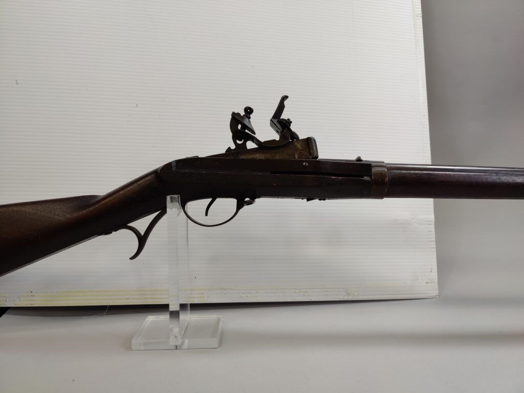 In 1814, John H. Hall of Portland, Maine, demonstrated prototype breechloading flintlock rifles based on his patent of three years prior. The War Department was suitably impressed, ordering 100 examples for further testing in 1817, then two years later, awarding Hall a production contract. Under his direct supervision, the armory at Harpers Ferry, VA, produced M1819s through 1840, though in relatively small numbers due to their cost and complexity. To enable manufacturing of the highly advanced design, John Hall developed tools and gauges which allowed for much greater precision than was typical for the time. Despite this, however, existing technology could not fully solve the problem of gases leaking from the gap between chamber and barrel. Throughout their service history, which included the Seminole Wars, Hall rifles were always used in smaller numbers than conventional muskets, though many were converted from flintlock to percussion after the latter system’s adoption in 1842. Converted Hall rifles saw action in the Mexican-American War (1846–1848) and persisted in small numbers through the Civil War. Of some note, the West Virginia Senate adopted a resolution in 2013 making the M1819 the state’s official firearm.